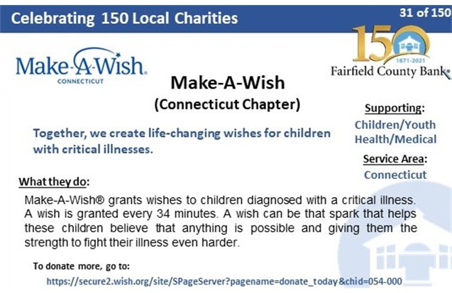 As part of our 150th Anniversary celebrations, the Bank is celebrating 150 local Charities by donating an additional $150 to them and promoting the charities on social media.